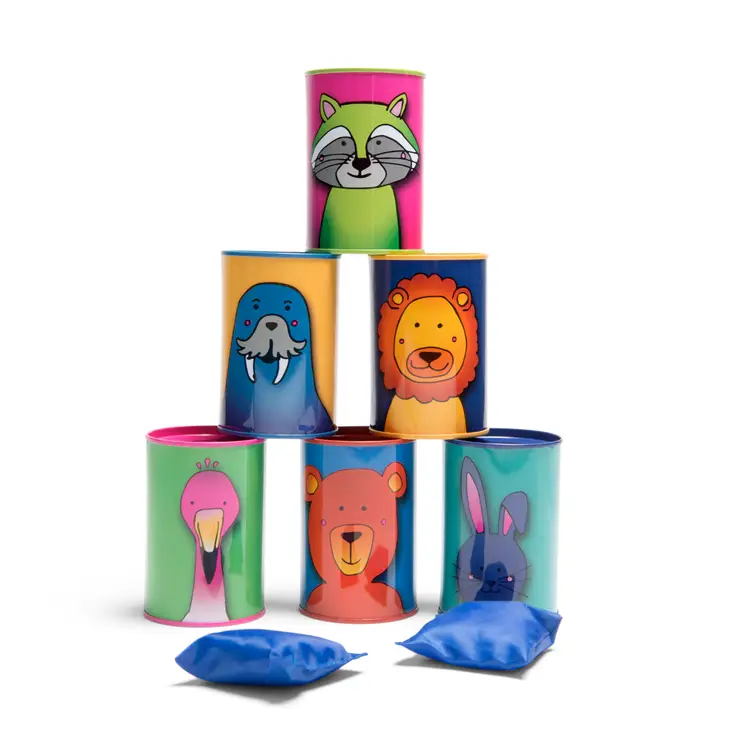 Zes stoere vrienden uit het dierenrijk willen graag omgegooid worden! Het aloude blikgooien heeft in dit spel een frisse make-over kregen, waardoor het nog leuker is om rinkelende blikken op de grond te horen vallen! Tel de punten op de achterkant van de blikken; wie scoort er het hoogst?